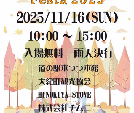 【Takihara Autumn Festa 2025】に参加します! 2025年11月16日(日) 10:00-15:00 入場無料 主催:道の駅木つつき館 大紀町観光協会 ひのき家 チムニー 三重県大紀町滝原870-...
