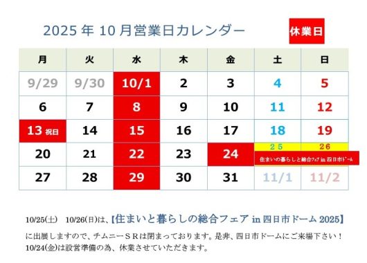 直前のお知らせ申し訳ございません。 9月28日(日)は 【臨時休業】 とさせていただきます。 打合せの為、外出しておりますが、お電話はお受けできますので お急ぎのお客様はお電話にてお問合せ下さいませ。 ㈱チムニー 059...